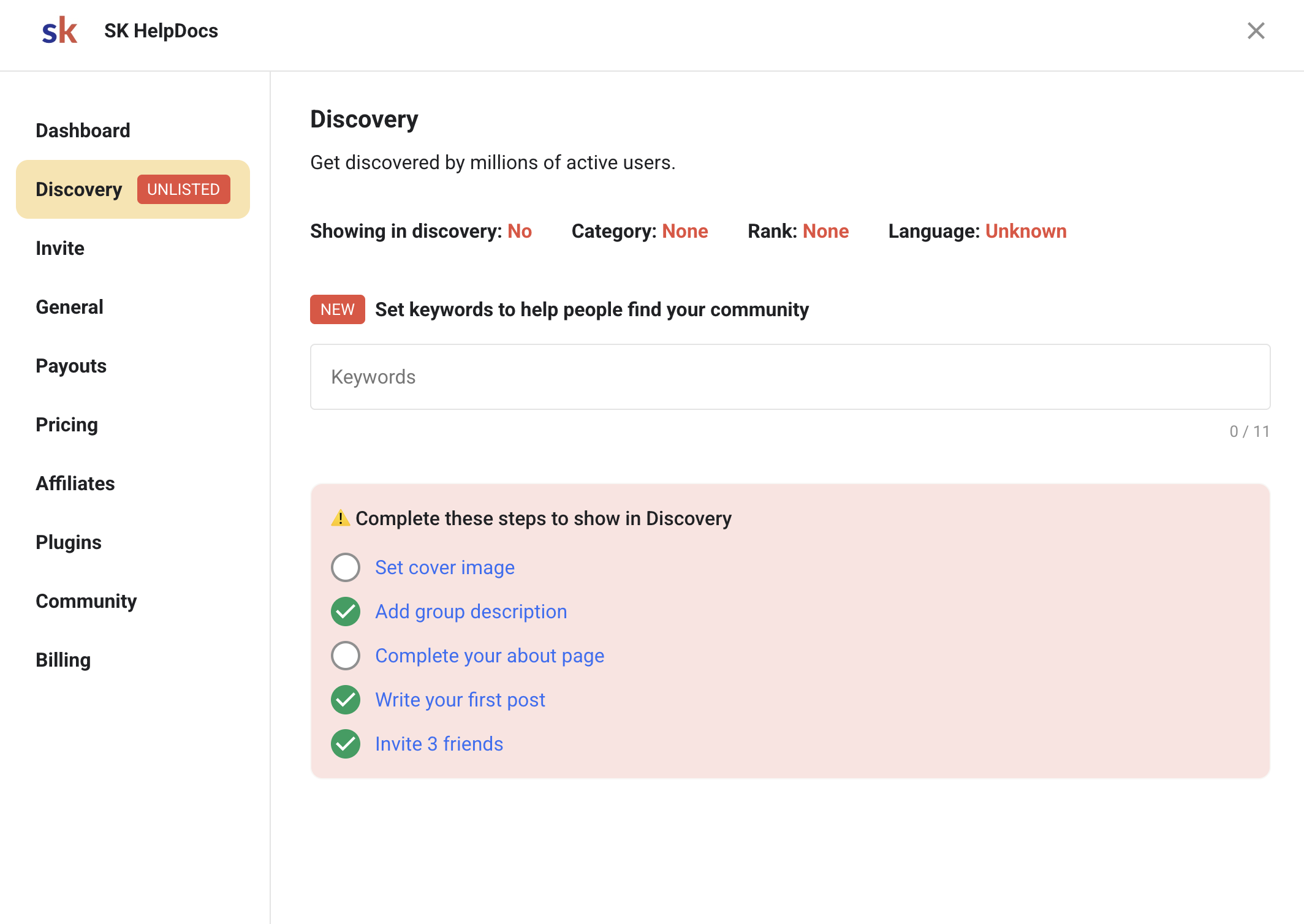 If you see your group UNLISTED, that means your group hasn't met the required criteria.