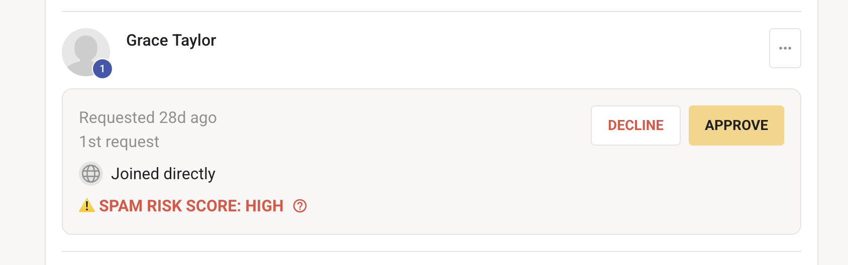 Membership Questions allow you to review a new member’s bio, location, and profile picture before approving them. If you identify a spam account, you can ban them immediately so they can’t request to join again.