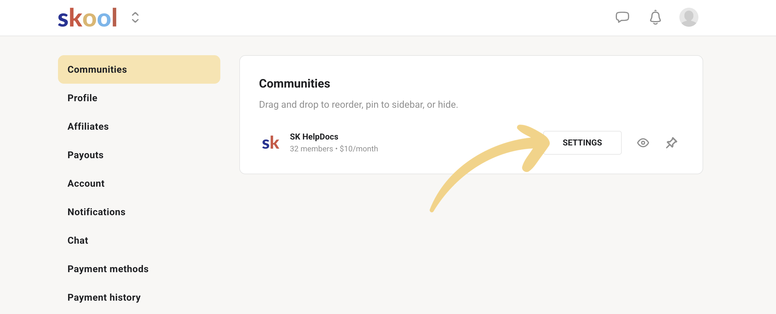 - Click on the SETTINGS button for the group you want to upgrade to the annual plan.