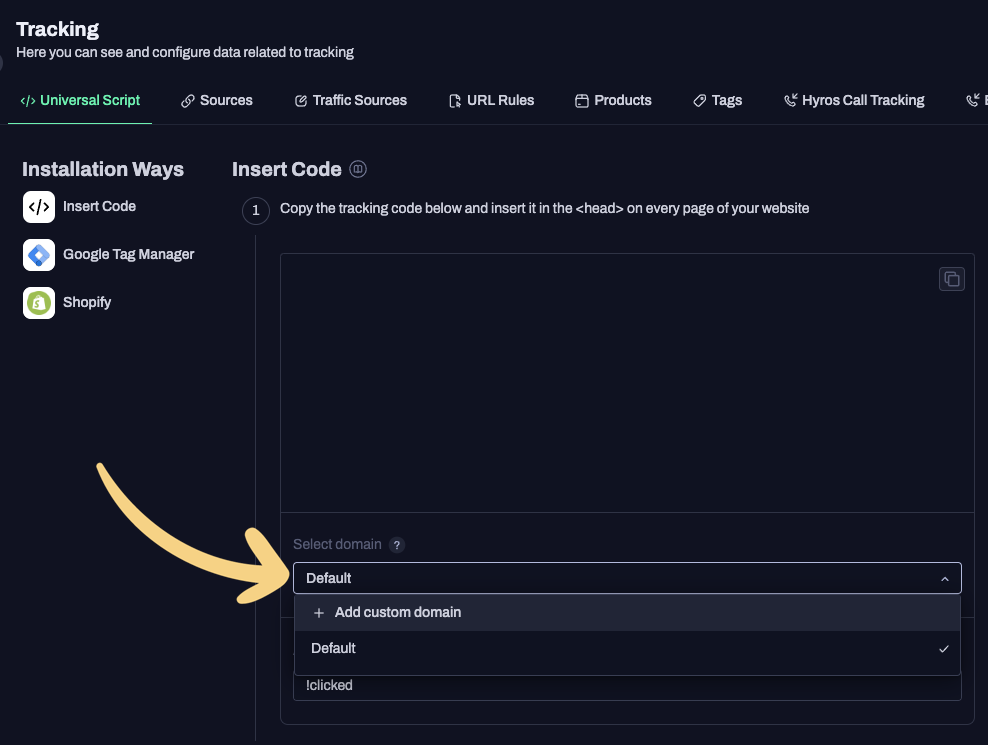 Note: Please make sure to select "Default" under the select domain if you have a custom domain.