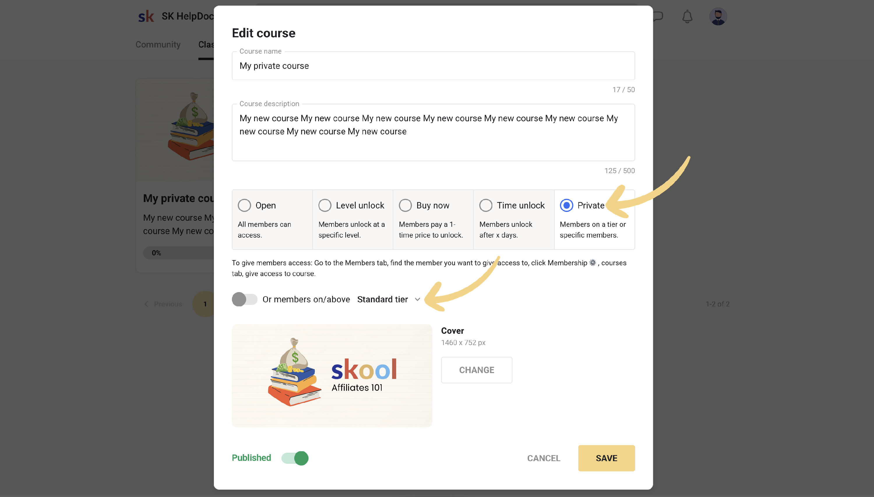 Skool allows you to set custom access to each of your courses. Here are the three options: