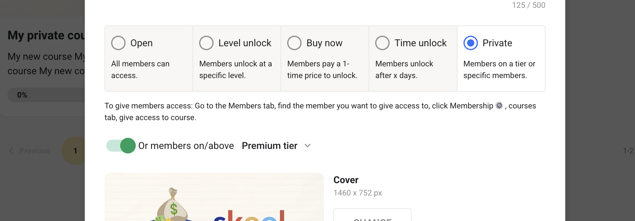 To allow Tiered access, set the courses to Private. Once you set them to Private, you'll see Tier access.