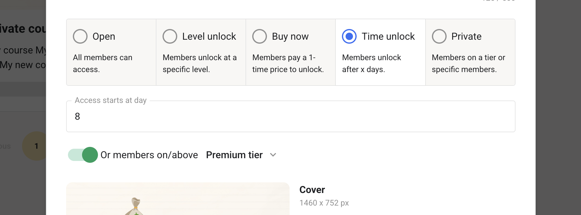 You can also set up permissions based on Level Lock OR Tier; Buy Now OR Tier; Time Unlock OR Tier.