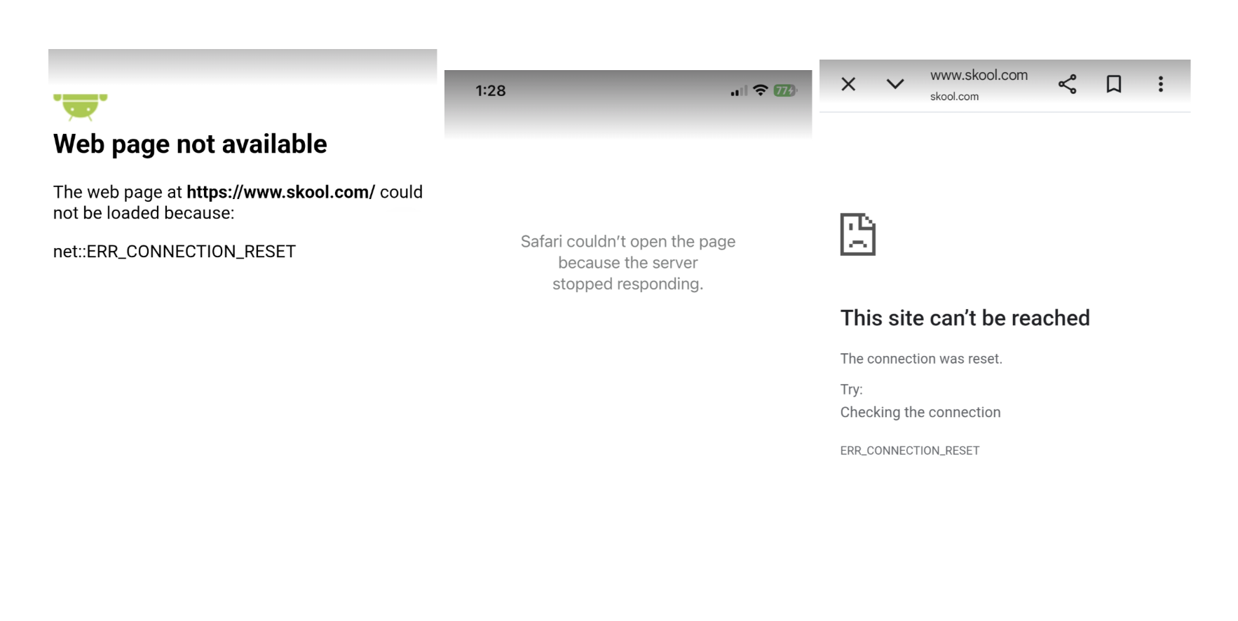 Live issue: Cablevision Systems Corporation, Altice USA, or Optimum Communications Internet Service provider is currently unable to connect to Skool.com. In most cases doing 1 or 5 from below has fixed the issue.