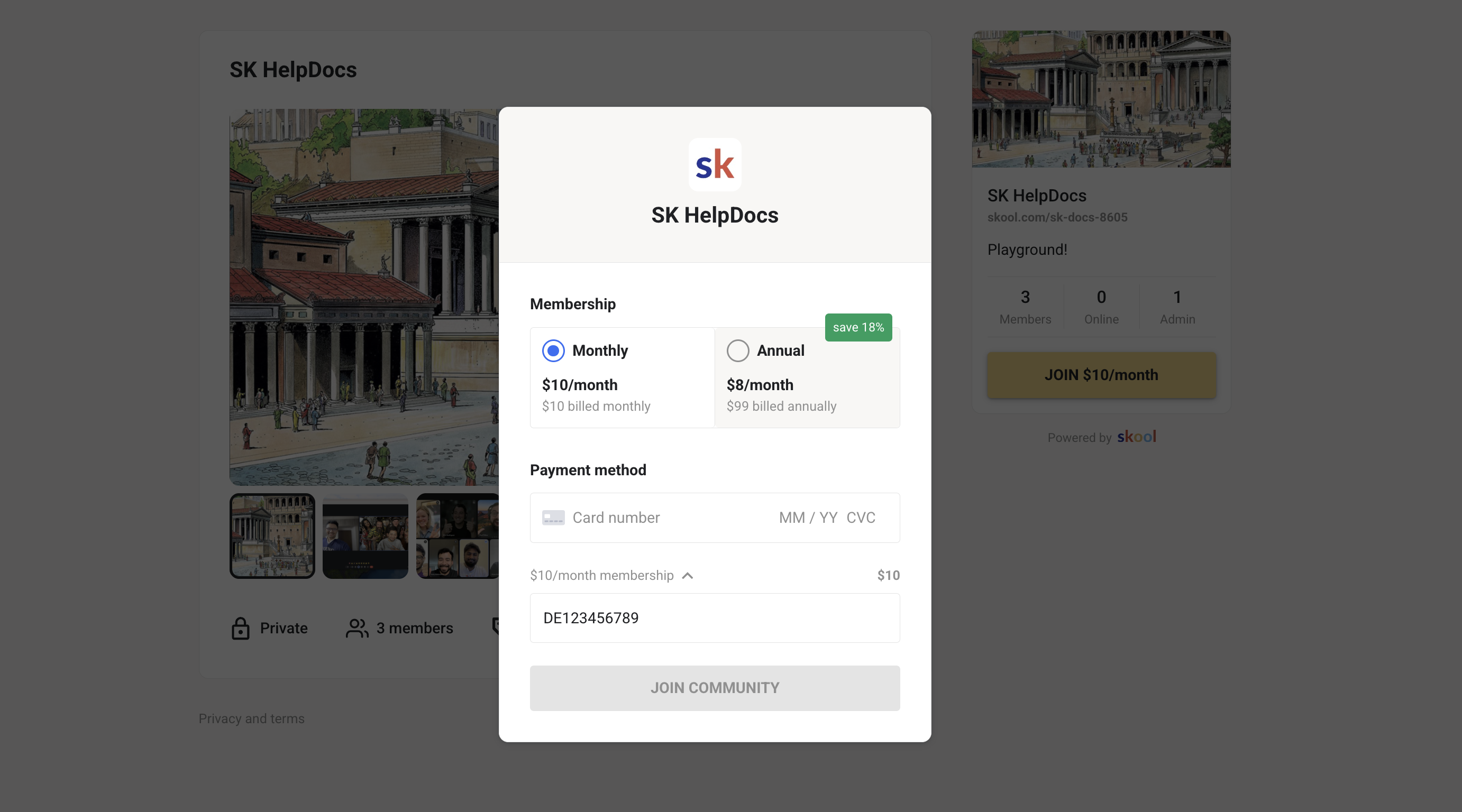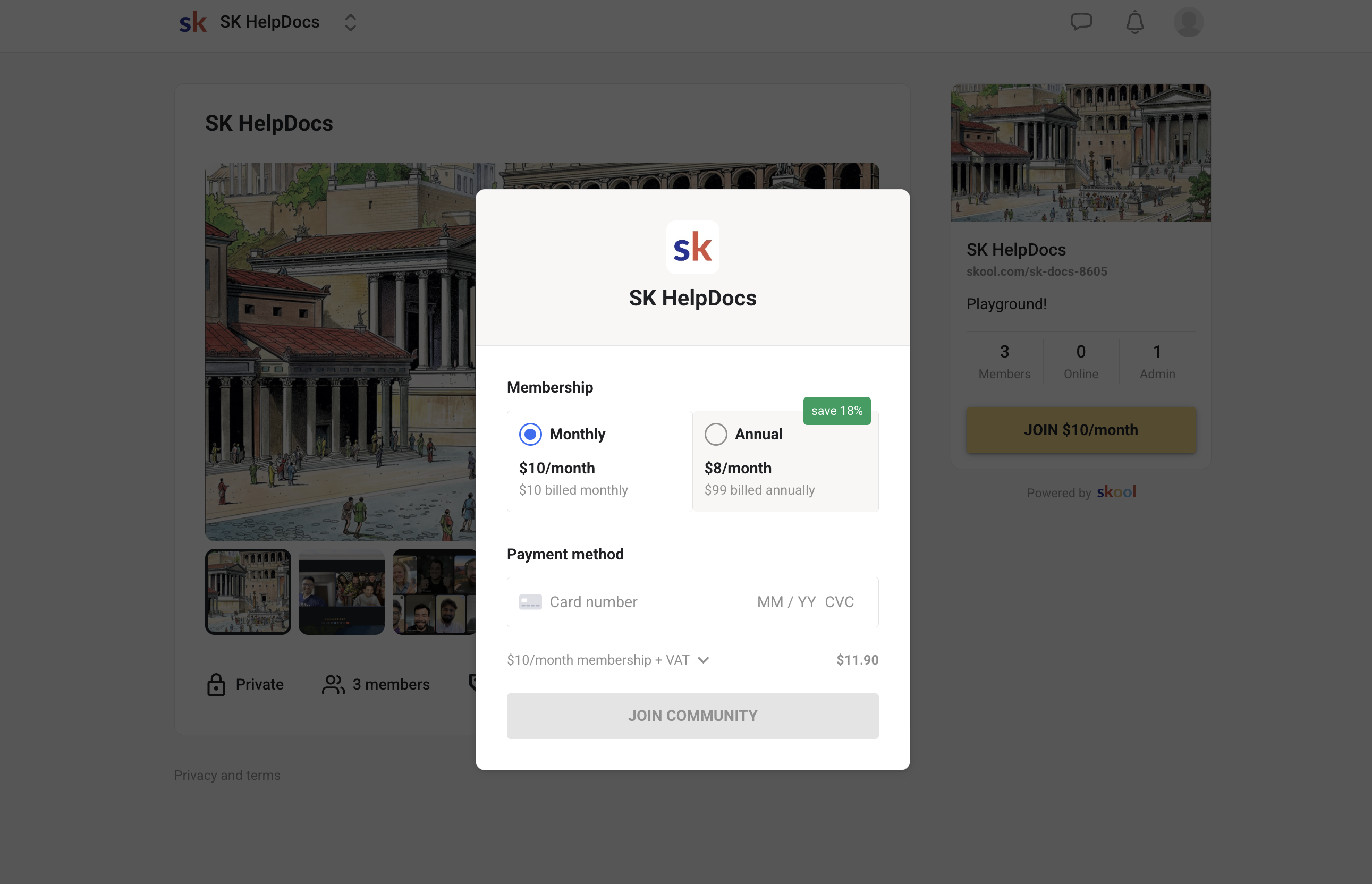 A: Members will have VAT added to their payments in jurisdictions where Skool collects the tax. VAT charges are processed and remitted via Skool. Creator earnings won't be affected by the VAT we collect, as it’s in addition to the price that you set.