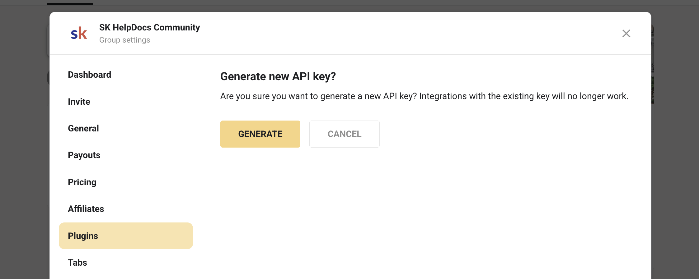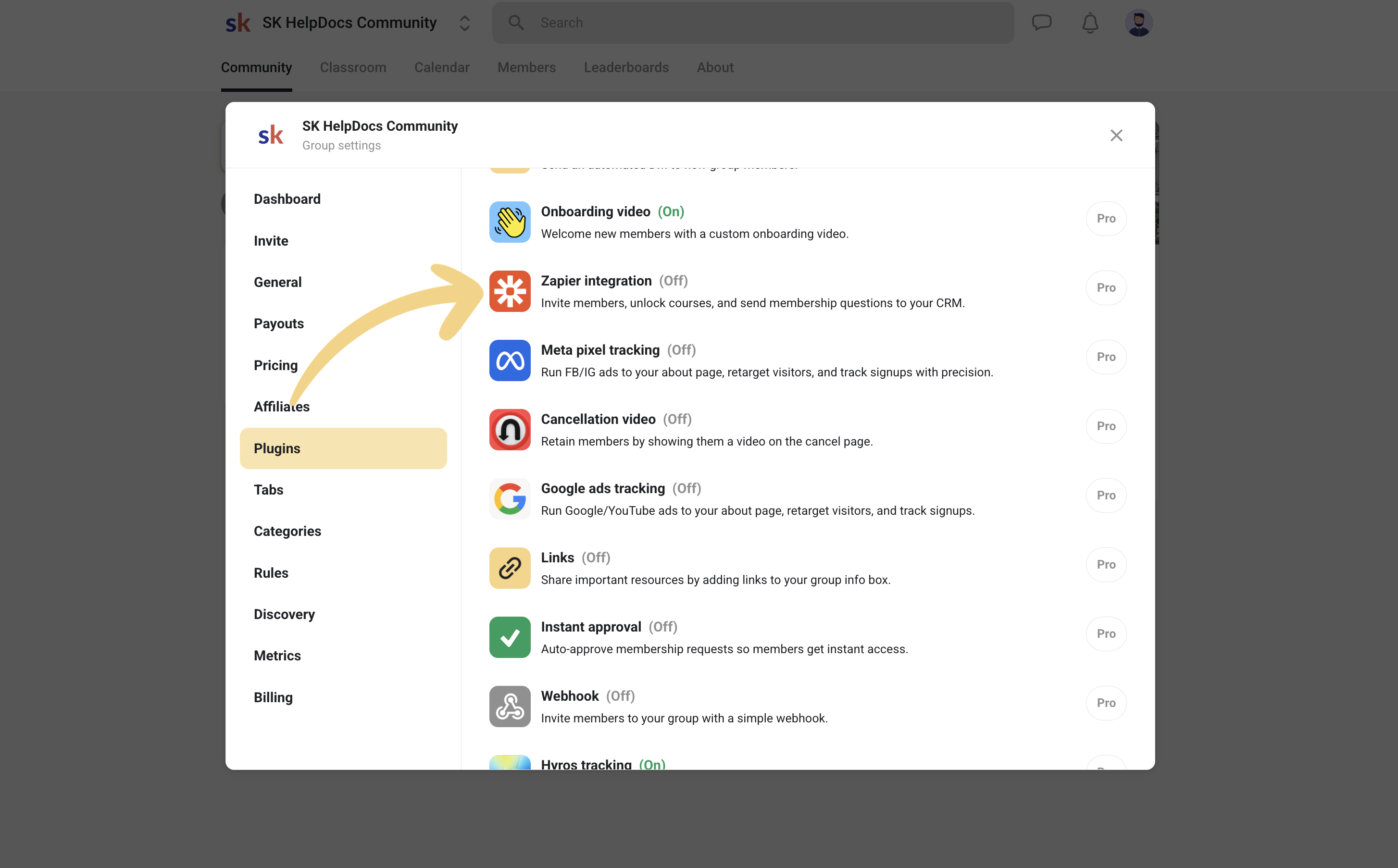 First thing to do is head over to the Plugins menu in your group settings modal and click "edit" next to the Zapier plugin: